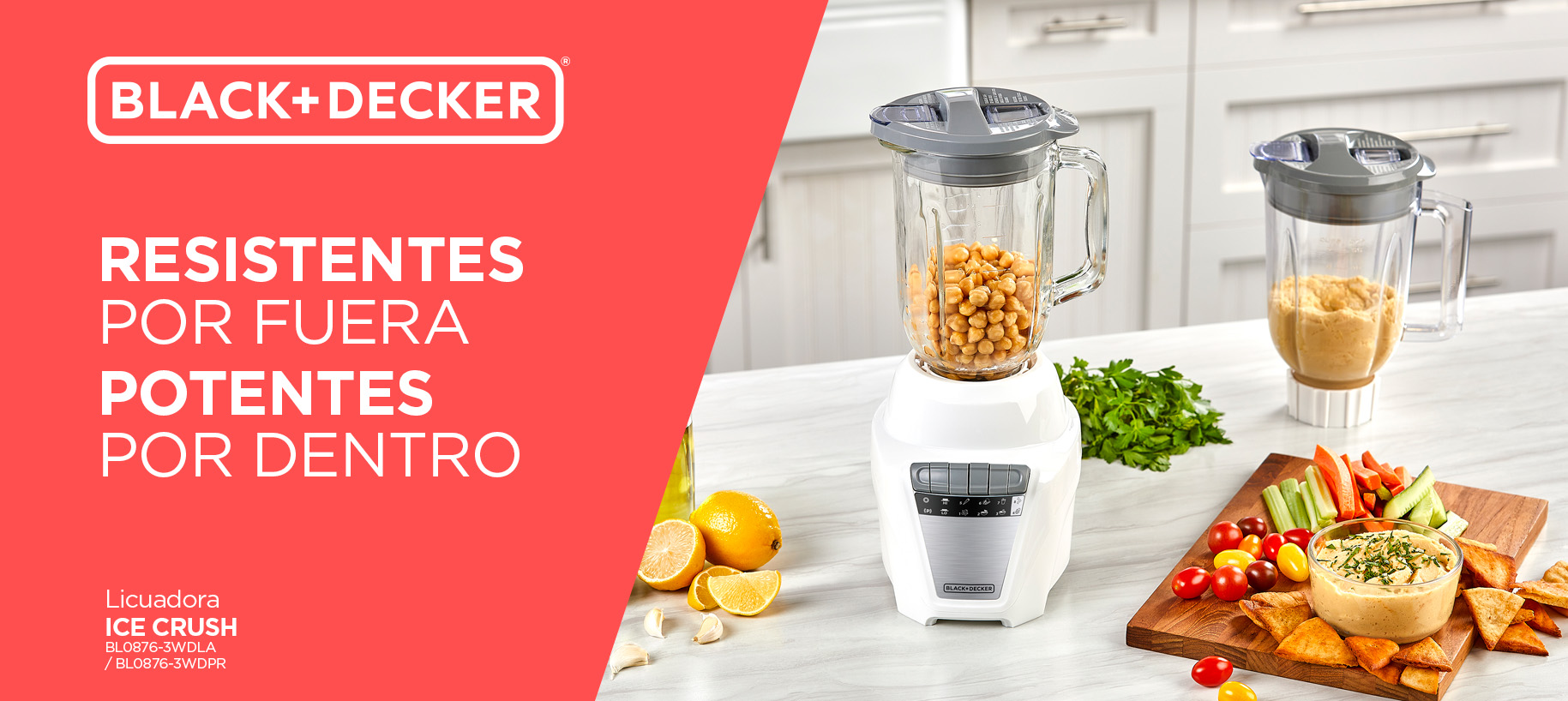 2 veces más duraderas* 4 cuchillas de acero inoxidable 8 velocidades + pulso 700 watts de potencia* para triturar hielo Jarra de vidrio de 1.25L y jarra plástica de 1.65L ergonómicas Tapa de doble abertura Crea jugos, batidos, bebidas congeladas, sopas, salsas y mucho más Cuchillas removibles para una limpieza fácil