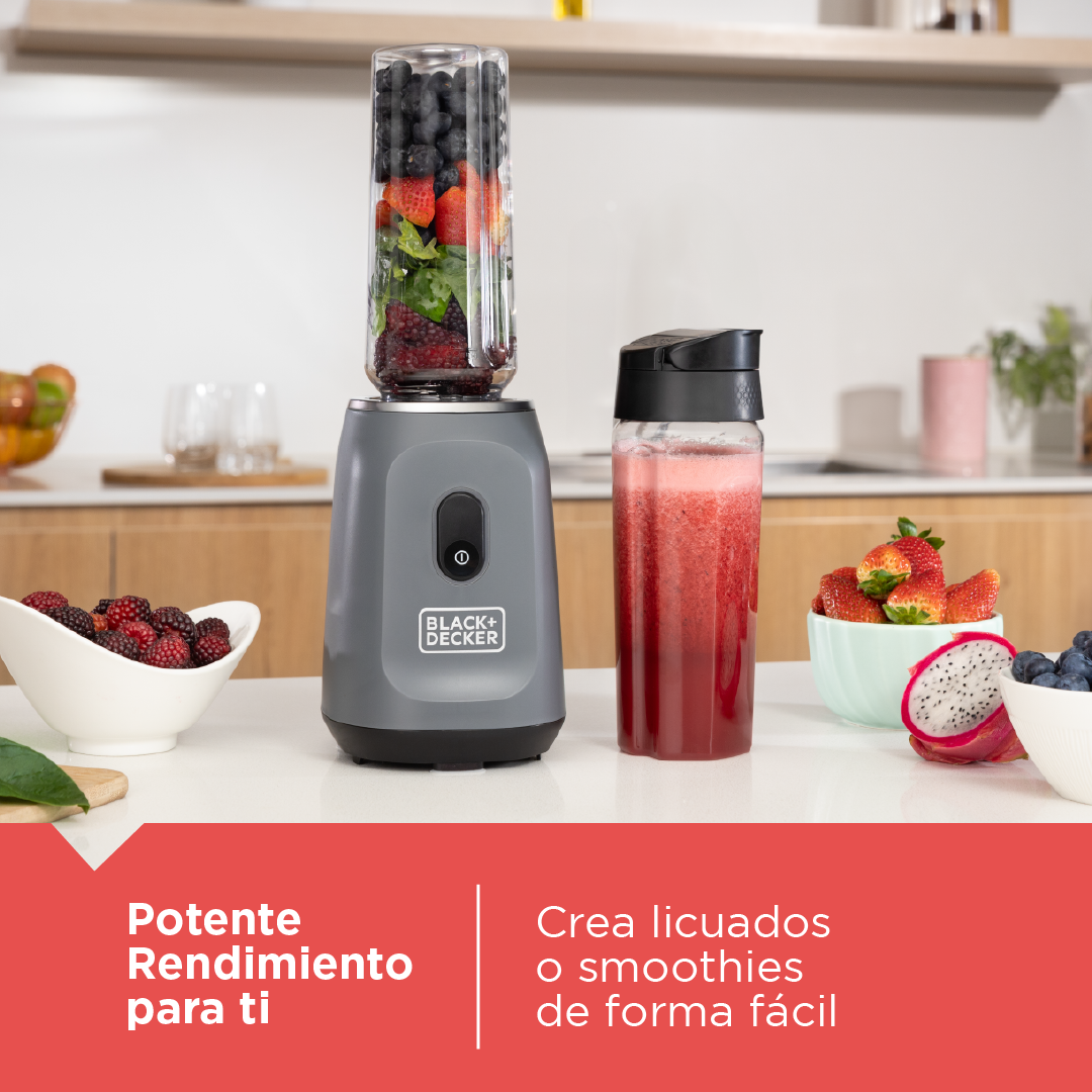 Transforma tus días con la licuadora personal Ice Crush de Black+Decker. Con 300 watts de potencia y cuchilla de acero inoxidable, tritura hielo y prepara bebidas en segundos. Incluye 2 vasos de 600 ml de tritan sin BPA y tapas a prueba de derrames. ¡Lleva tus licuados favoritos a donde vayas