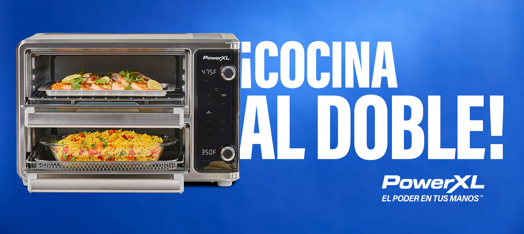 Ahorra tiempo y espacio en tu cocina con la tecnología SMARTSYNX™. Cocina dos platillos diferentes a la vez, sincronizando los tiempos de cocción para que todo esté listo al mismo tiempo. Disfruta de comidas más saludables con la freidora de aire que reduce hasta un 80% de calorías. Con 10 ajustes personalizados, puedes freír con aire, tostar, hornear y más. Su gran capacidad de 28L es perfecta para toda la familia. ¡Transforma tu experiencia culinaria hoy mismo! Adquiere PowerXL™ SMARTSYNX™ y reinventa tu cocina.
